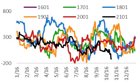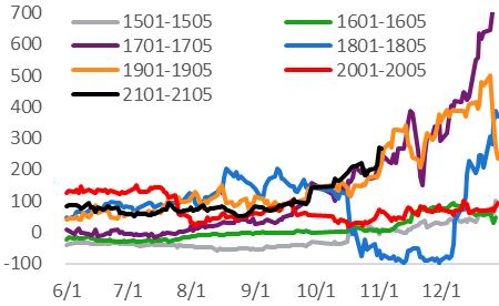 盘面1-5价差不断走强,与16及18年的同期水平近似。