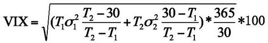 目前,VIX指数编制公式如下,近月与次近月波动率为: