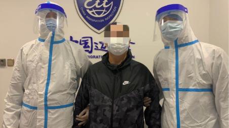 11月5日,李某乘飞机回国。徐州鼓楼公安分局追逃民警联合成都警方履行相关办案程序,并将李某带去强制隔离点。下午6时,移交逃犯工作圆满完成,民警在经过六次严格消毒后才将隔离衣完全退掉。(总台央视记者 刘湘攸 吴非)