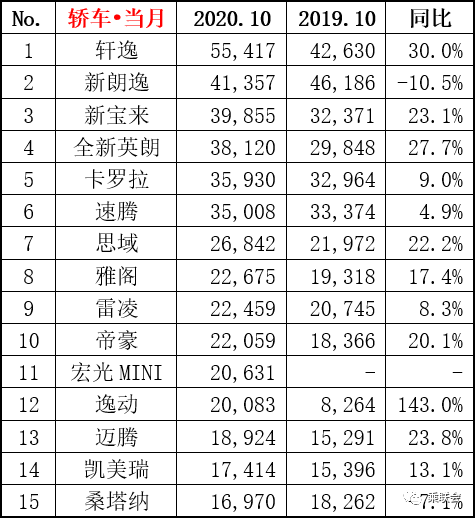 东风日产最能打的依然是轩逸,10月份销量突破了5万辆,贡献了日产近一半的销量,继续稳居轿车类销量第一名。