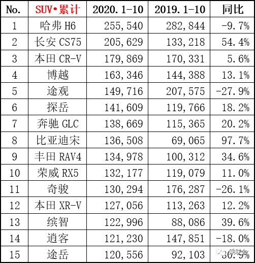 同比涨幅最大的是长安汽车,涨幅达50%。这与长安CS75 Plus今年在SUV市场的强势表现直接相关,其10月份销量突破了3万大关,仅次于新老车型齐上阵的“神车”哈弗H6。