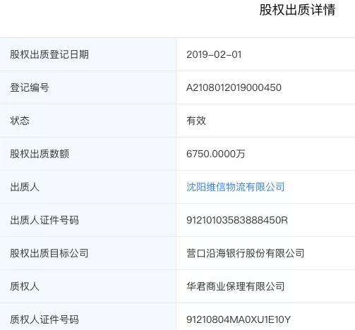 此外,持股沿海银行4.4%的维信物流和持股4.23%的恒固物资的电话也是同一个,且与华君控股、昌达广告电话一致。同样的,这两家公司的实控人也将股权出质给了”华君系“的公司。