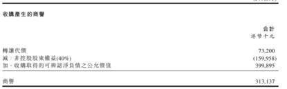 但这家花费7320万港元的保兴达实业净资产高达负3.999亿。光这部分就产生了3.13亿港元的商誉。