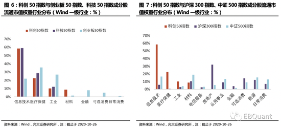行业分布特征:行业集中度高,主要覆盖信息技术、医疗保健等高新科技产业。从Wind一级行业来看,科创50指数主要覆盖信息技术、医疗保健、工业和材料等一级行业,科技属性明确,行业板块普遍具有较高发展与增值潜力。