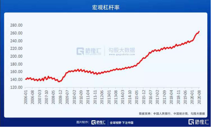 放水的大背景下,经济快速回拉,但政府、居民、非金融企业三个部门的杠杆率也上的很快,目前已经高达264%,创下了历史最高记录。