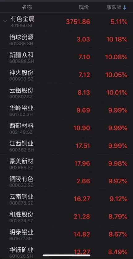 除RCEP主线外,今日市场走势最强的当属有色金属板块。截至午间收盘,有色金属指数上涨5.11%,位居行业涨幅榜首位。板块内,怡球资源(维权)、新疆众和、云铝股份、江西铜业等多股涨停。