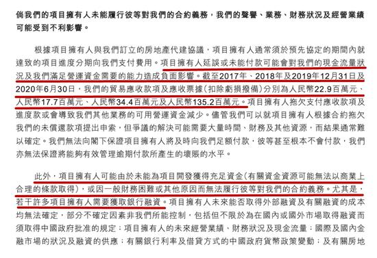 中原建业在招股书中提示:“项目拥有人可能由于未能为项目开发获得充足资金,或因一般财务问题或其他原因而无法履行彼等对我们的合约业务。尤其是,若干许多项目拥有人需要获取银行融资。”(中新经纬APP)