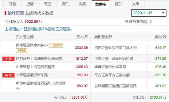 从今日怡球资源的龙虎榜来看,“小鳄鱼”所在的南京证券南京大钟亭证券营业部买入3200多万元。