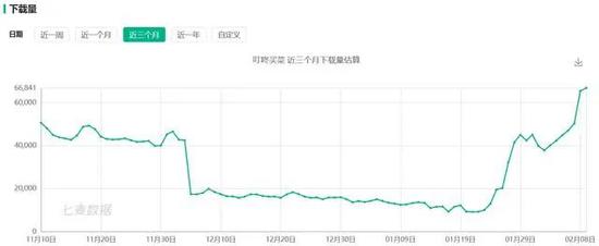 据七麦数据预测,疫情期间,拥抱“阿里爸爸”大腿的叮咚买菜APP的日均下载量超过4万人次,且平台GMV(成交总金额)同比增长6倍,客单价也大幅增长了70%。