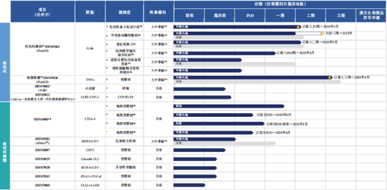 据悉,全球已经有30多家制药公司和学术机构采用和铂医药的全人源转基因抗体平台开展抗体新药的开发,其中包括礼来、辉瑞、信达、百济神州、正大天晴等大型药企。因此和铂医药管线也得以快速拓展。公司管线已覆盖11种靶点,提供同类最佳或同类首创产品的研发。截至2020年6月30日,公司有6个项目进入临床阶段。