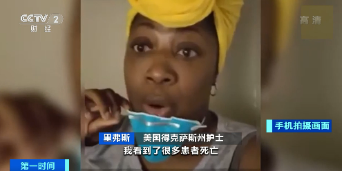 美国得克萨斯州护士 里弗斯:因为某些原因,那里的医生并不积极治疗患者,我看到了很多患者死亡,我感觉我自己已经死过一次了,那种氛围让我崩溃。我被安排在一个叫“深坑”的房间,房间里有八个病人,他们告诉我,所有进入到“深坑”的病人,没有人能活着出来。