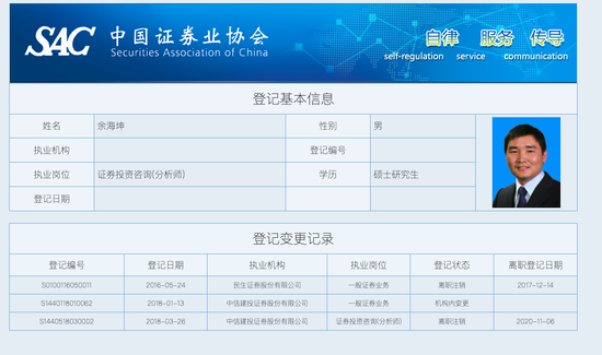 证券业协会从业人员信息展示中相关资料证明了这些情况。