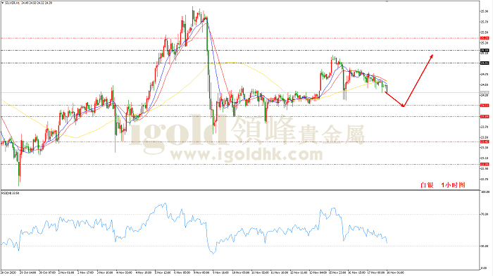 日内,美国方面无特别重要的数据消息,投资者可留意次日01:15 美联储威廉姆斯发表讲话。虽无重要消息,但纵观历史走势可知每周都能出现一到两天的大行情,投资者仍需注意市场波动。昨日美国10月零售销售月率录得0.3%,预期值为0.5%,前值由1.90%下修至1.6%。具体来看,线上零售商的销量在激增,但家具、服装和体育用品的销售均出现显着下降。在近期公布的全球最大的ETF公布的黄金和白银持仓数据可知,全球最大白银ETF--iShares Silver Trust已连续四个交易日减持,四个交易日连续减持已达到288.71吨;而全球最大黄金ETF—SPDR Gold Trust从10月15日开始除了有三天是小幅增持以外,其他交易日均是减持。ETF的持仓态度也很好的说明了当前要谨慎的看待金银的上涨,勿要一厢情愿。