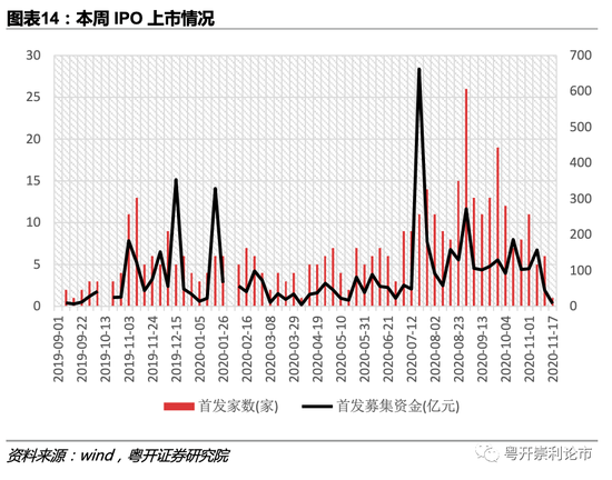 上周IPO新股上市7家,募集资金规模45亿元,相较前一周158亿元有所下降。