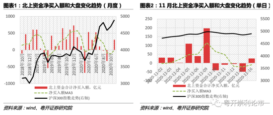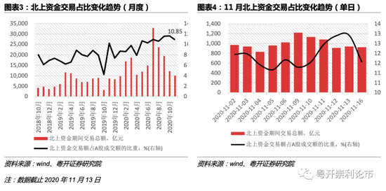 上周(11/9-11/13)在疫苗研发的利好消息提振下,市场风险偏好显著回升。上周北上资金净买入92亿元,前一周(11/2-11/6)净买入214亿元,截至2020年11月13日,本月北上资金净流入306亿元。