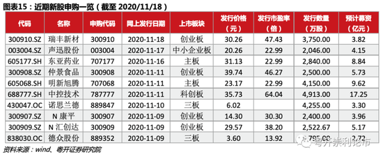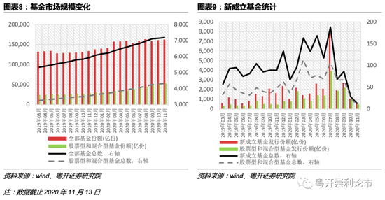上周国内基金(股票+混合)新发行305亿元,较前一周448亿元规模略有下降。截至2020年11月13日本月新发基金12只。