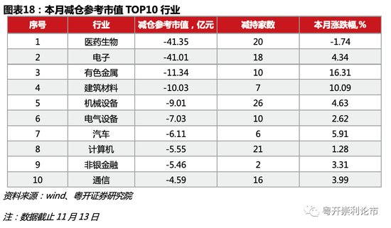 本周二级市场净减持122.91亿元,前一周净减持211.02亿元。11月以来减仓压力最大的行业主要集中在医药生物、电子、有色金属、建筑材料、机械设备板块,其中有色金属和建材板块本月涨幅较大。