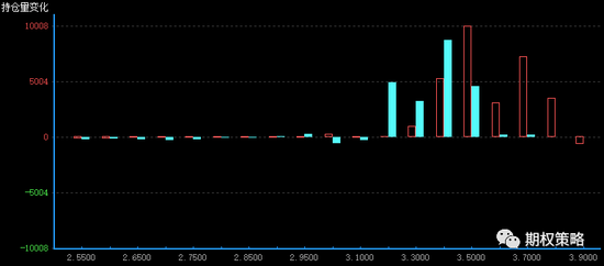 从12月持仓变化来看,认购在3500处增仓最大,认沽在3400处增仓最大,50ETF支撑有上移迹象。
