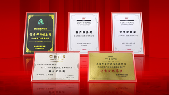 (第7届中国门业定制家居GDCC峰会颁奖典礼)凭借优越的品牌力、出色的产品力、雄厚的生产力、完善的服务力,江山欧派持续强化优势,为客户赋能。在2020年,公司先后获得了合肥万科企业有限公司颁布的客户服务奖、万科金域学府颁布的优秀合作单位、旭辉集团与银盛泰集团联合颁布的优秀合作单位、佛山漫悦湾项目颁布的优秀部品供应商、佛山远洋天骄项目颁布的美轮美奂奖、晋中文澜府项目部颁发的最佳配合奖,以及2020万科城服务之星等。同时,还收到了徐州万科新都会客户服务中心、烟台中海地产中海悦公管房修工程师等敬送的锦旗……