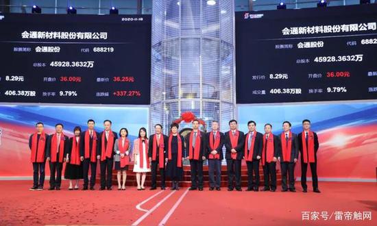 会通股份首日收盘价为40.24元,较发行价上涨385%,今日股价下跌约7%,市值约168亿元。