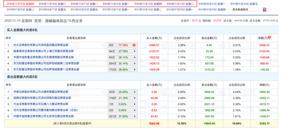 以最新的龙虎榜为例,11月19日,位列买二、买三、买四、买五的营业部分别为国泰君安证券上海江苏路营业部、中金财富证券无锡清扬路营业部、东方财富证券拉萨团结路第二营业部、东方财富证券拉萨团结路第一营业部,均为实力游资。