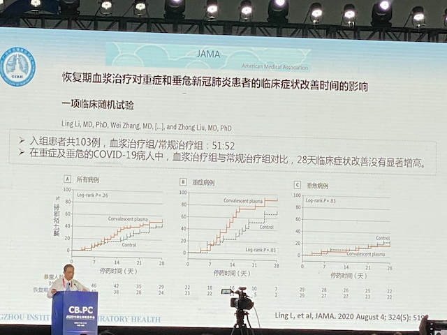 对于恢复血浆治疗方式,钟南山指出,对于重症和垂危的新冠患者,血浆治疗组与常规治疗组相比,28天临床症状改善没有显著提高。