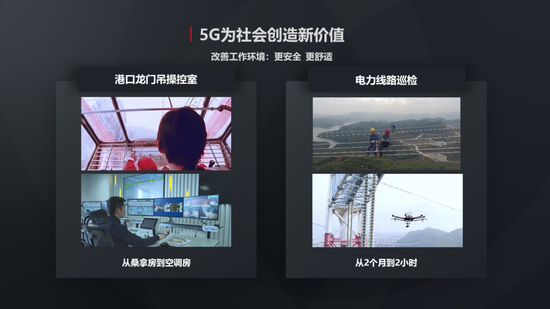 又如,在电力行业,有了5G+AI的无人机巡检,过去人工巡检需要辛辛苦苦,两个月才能完成的工作,现在只要2个小时就能完成。
