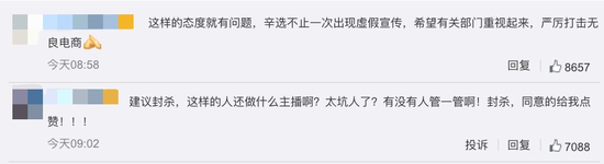 部分网友表示,主播应该对所售商品的质量负责,应该在销售之前就拿去送检,而不是出事之后仔甩锅,“口号是严选,现在成了瞎选了。”