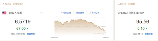 热点栏目11月23日,人民币中间价报6.5719,上调67点,上一交易日中间价报6.5786,在岸人民币上一交易日收报6.5714。