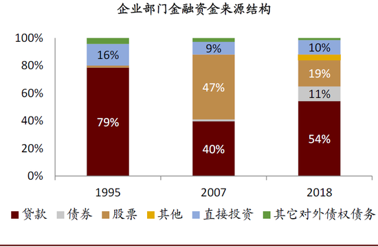资料来源:BIS,世界银行,中金公司研究部 注:存量法下的直接融资比例=(国内上市公司股票总市值+非金融企业债券余额)/(国内上市公司股票总市值+非金融企业债券余额+银行对私人非金融部门的贷款余额),其中股票市值数据来自世界银行,债券余额和银行信贷数据来自BIS