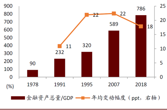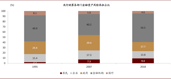 图表: 央行测算得,2007-2018年金融资产风险向金融机构集中的趋势明显