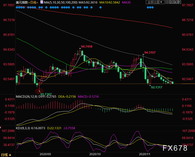 周一美元指数小幅下跌,美国财政部长努钦表示财政部与美联储有足够弹药支撑经济,他还称有关刺激措施的谈判将继续进行,这使得美元指数走弱,另外疫情的恶化也让美元的弱势无法得到改变。美联储官员持续释放经济面临风险的言论,也让市场预期美联储或将在十二月加大刺激力度。