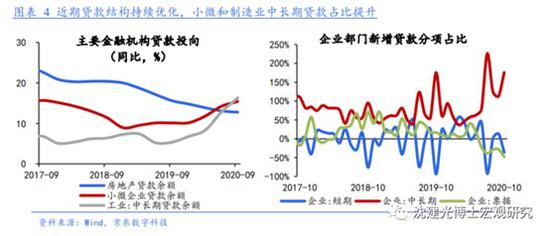四是金融监管趋严、不断强化实体导向。疫情爆发后政策面对小微企业的信贷支持力度显著加大,但部分实体贷款违规变换资金用途,以多种形式直接或间接(结构性存款、理财产品等)投向房地产;违规信贷作为首付进一步撬动按揭,6-9月全国新增居民中长期贷款均在6000亿左右,深圳、宁波等热点城市房价上涨迅速。在此情况下,监管迅速出台“三道红线”规则并窗口指导部分金融机构收紧房贷额度,旨在遏制金融乱象、降温房市、减少房地产挤占实体金融资源。其他监管动作也具有一定指示意义,例如,近期央行、银保监会联合发布《网络小额贷款业务管理暂行办法(征求意见稿)》,银行与互联网公司合作的联合贷款业务未来面临全面压降,同样值得关注。