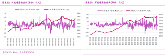 Wind数据显示,自富时罗素/MSCI扩容以来,实施日当日北上资金净流入有9次,另有5次净流出,实施后一周,沪深300指数实现上涨的有8次,上涨概率超过六成。截止11月20日,2020年以来,互联互通机制下的沪股通和深股通累计净流入资金达到了1299亿元。依靠着扩大开放力度的背景,金融市场将深化供给侧改革。近期北向资金流入呈现缩量,从历史上北上资金持续大幅流出的持续时间与力度看,在连续三月净流出后未来北上资金或有持续边际转强的可能,资金流入需要成交明显放量,行情向好发展。