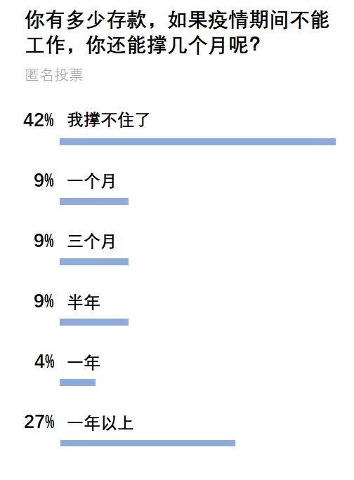 42%的人连一个月都撑不了,妥妥的“月光族”。27%人可以撑一年以上,少得可怜。