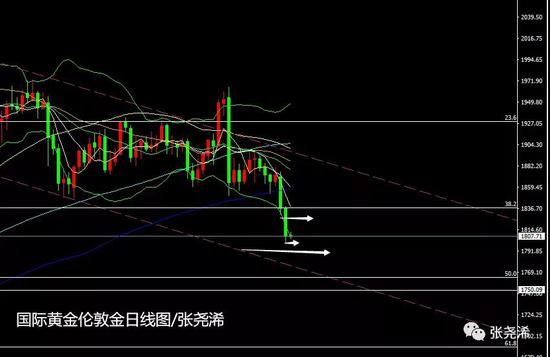 周线级别;黄金在本周一举跌破近期的30周期均线支撑后,目前仍保持其下方承压运行。对于较大的下跌幅度,也并没有产生明显回升,指标上,MACD绿色柱持续增强,快慢线也死叉向下散发运行,KDJ则也继续死叉向下运行,暗示后市偏向进一步走低。下方关注1791美元支撑,跌破则有跌至1763美元附近支撑的风险。进一步重点支撑则在月线级别的1683美元,这也是对于长期看涨,以及更高位置的再度起涨点和买入进场机会。