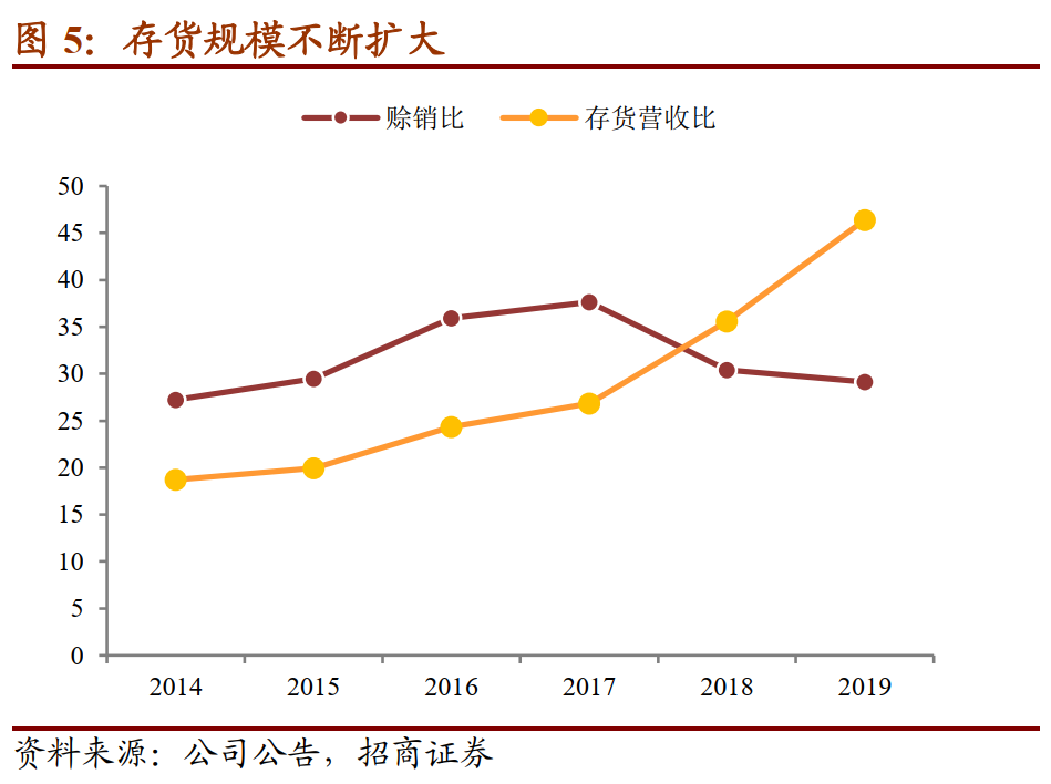 回款良好,但存货规模不断增加。2017年公司外延收购以来,回款情况逐步转好,赊销比逐步降低。但是存货规模却不断增加,且增加的存货以产成品为主,存在一定减值风险。