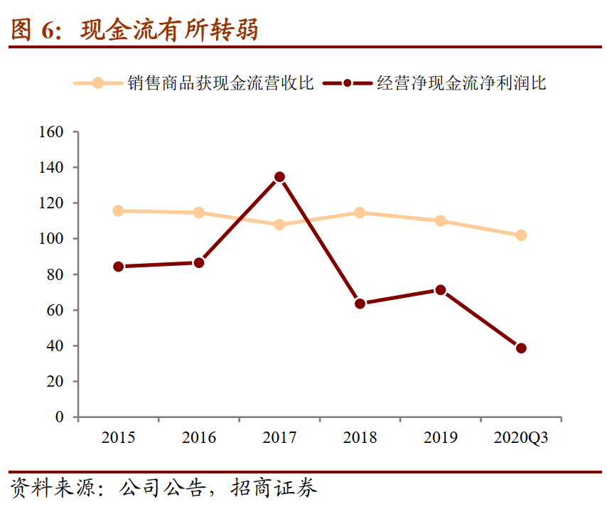 综合现金流有所转弱,未来仍需要较大资本开支。现金流方面,公司经营现金流近年有所转弱,收现比持续降低,同时经营净现金流净利润比也持续降低至80%以下。截至2019年末公司仍有超过10个重大在建项目、仍需投资超过3亿元,整体来看公司的经营净现金流并不能完全覆盖投资支出。