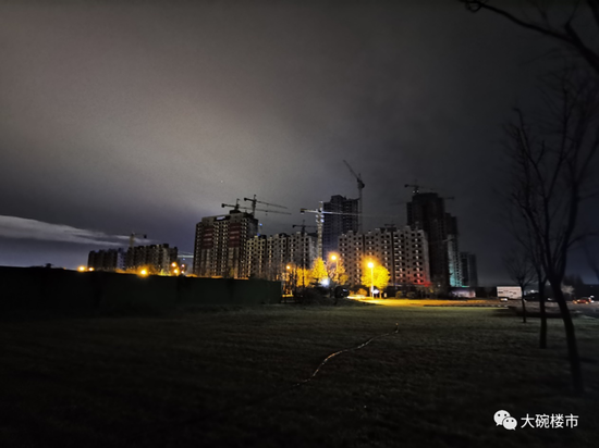 只有塔吊亮着灯,仍然不知疲倦建设着。