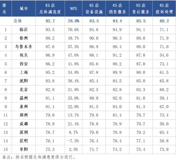 调查还发现,不同城市汽车4S店服务满意度有差异,总体呈现“北高南低”特点;