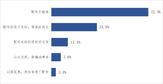 ④ 七成消费者认为4S店服务中 “配件价格高”