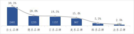 国产自主品牌(8个):宝骏、比亚迪、长安、哈弗、吉利、奇瑞、荣威、五菱;