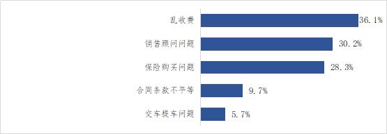 在服务标准SOP(即标准作业程序)方面,旧件展示SOP表现最差,有17.3%的消费者遇到旧件未展示情况;交车时内外干净表现较好,仅有4.6%的消费者认为交车时车辆内外不干净。此外,维修前没有告知维修内容和预计费用、增项未提前告知的比例低于10%。消费者在用车过程中遇到问题与4S店的沟通中,响应及时性低和解决效率低的“双低”现象是4S店存在的主要问题。因强制消费引起的投诉对总体满意度影响最大。