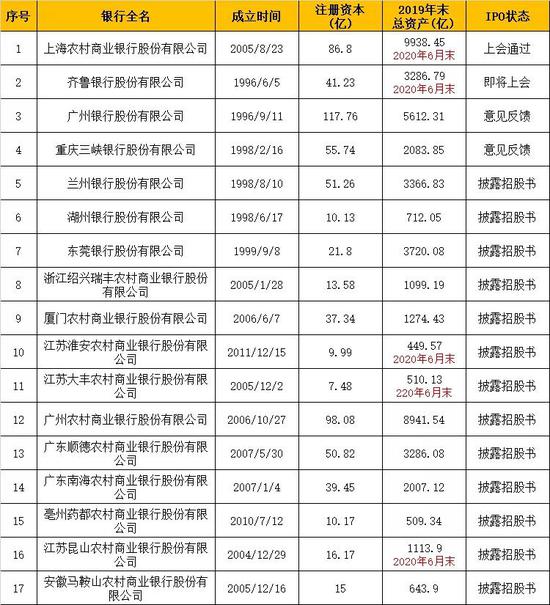 原标题:17家银行排队IPO,资产总额最高近万亿,最低不足500亿