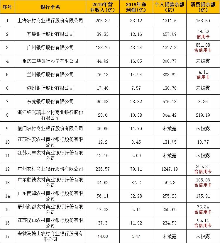 注:齐鲁银行、兰州银行消费贷款余额只计算信用卡部分,广州银行、广州农商银行、顺德农商银行、亳州药都农商银行、昆山农商银行消费贷款余额包含信用卡部分。