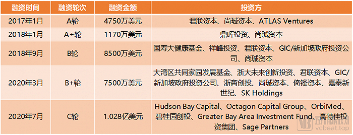 顶尖高管加独有技术平台,在一级市场上,和铂医药顺理成章的成为了明星项目,截至上市为止已经完成了共5轮,总额超过3.128亿美元的融资。在A-B+四轮中,如鼎晖资本这样的国内顶尖投资机构在A+轮就进入,君联资本等从早期就看好和铂医药的投资机构持续追加。到C轮融资又引入了Hudson Bay Capital、OrbiMed等国际化资本。