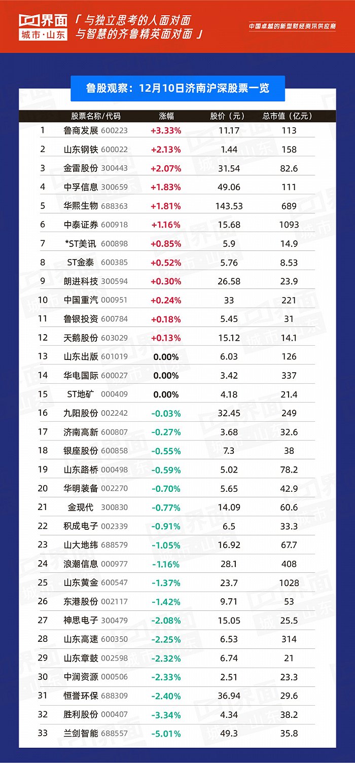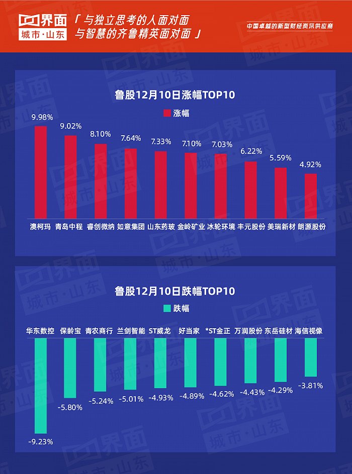 原标题:鲁股观察 | 12月10日:钢铁股强势领涨,山东106只个股上涨