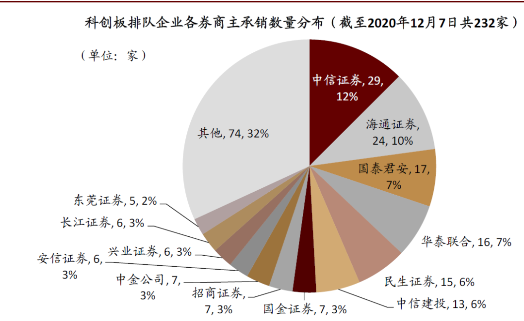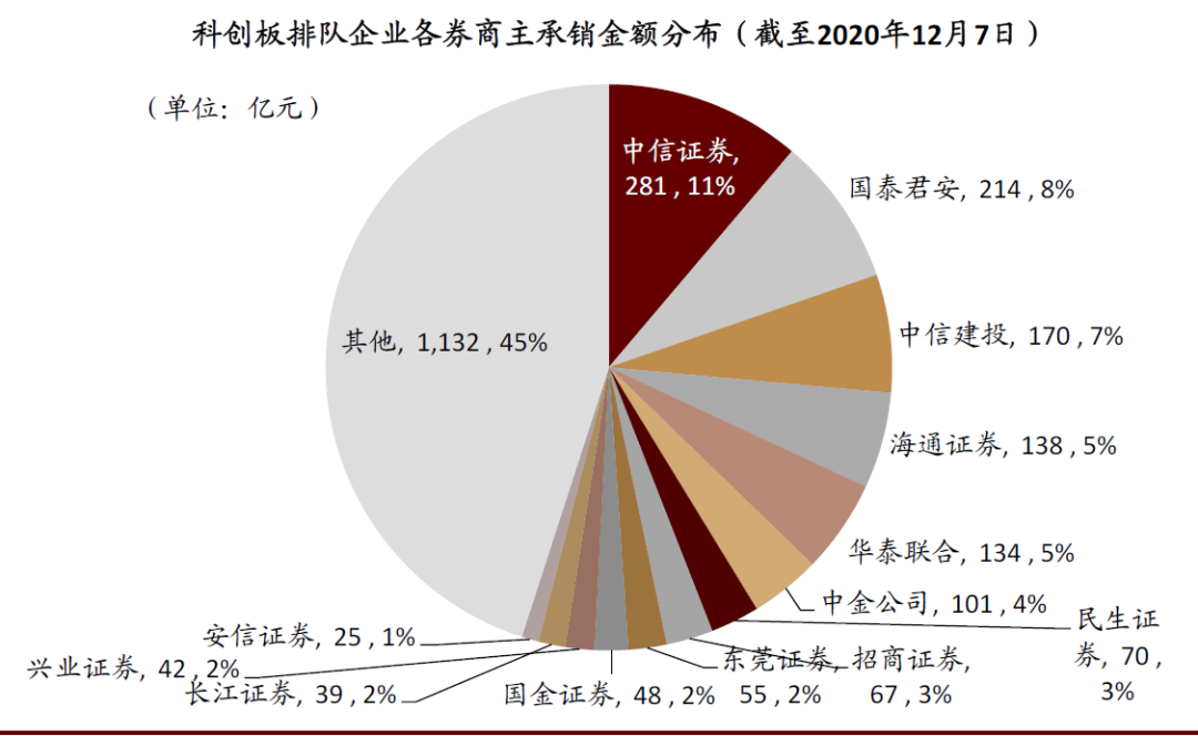图表: 头部券商在科创板排队企业中承销家数及金额均相对较高