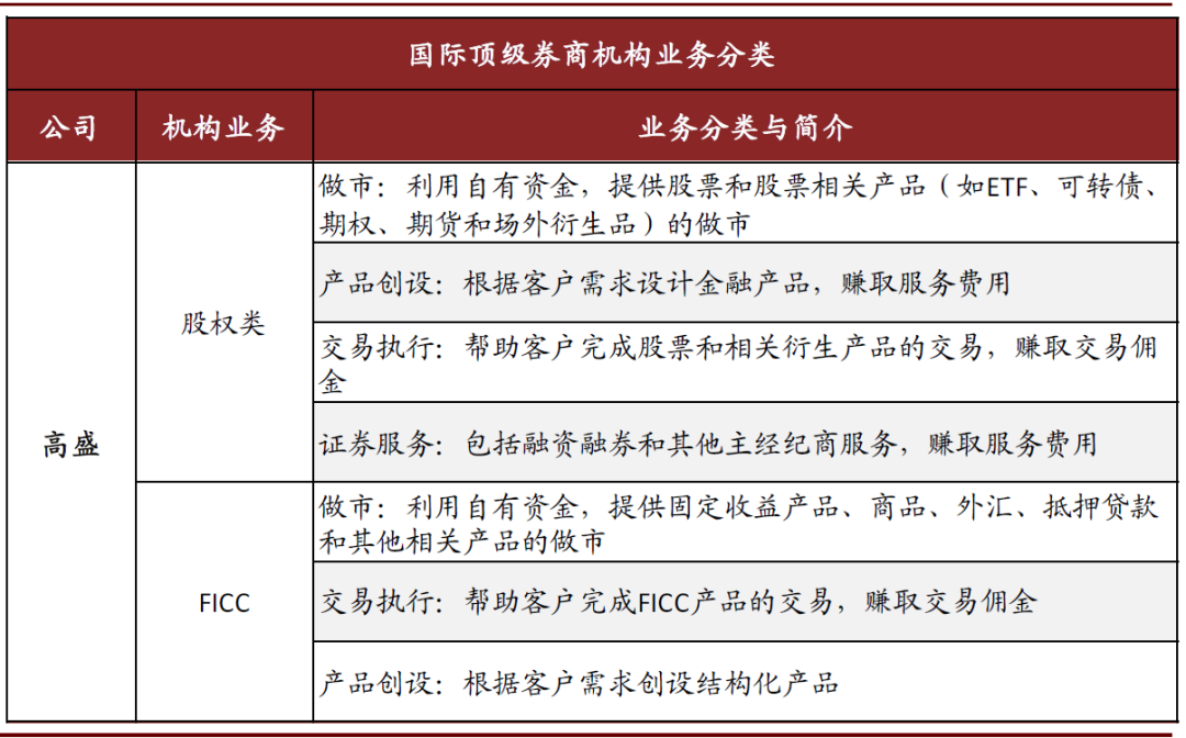 图表: 以高盛为代表的国际投行具备明确的机构业务分部设置