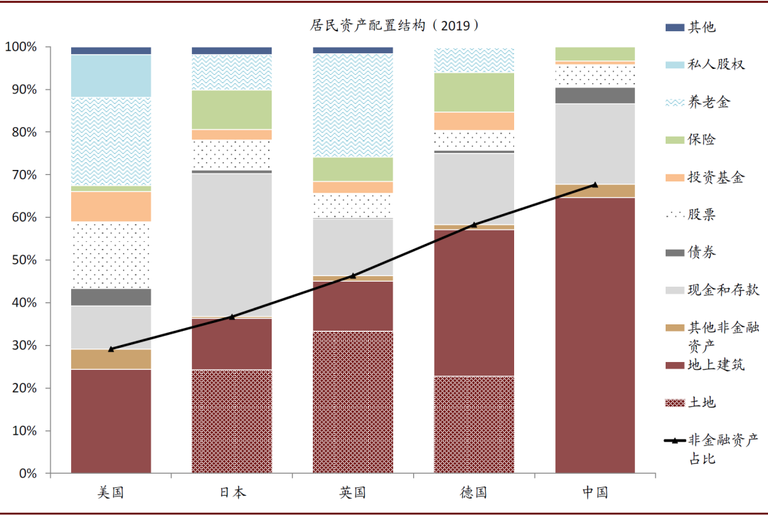 图表: …然而国际对比来看金融资产配置比例仍然较低